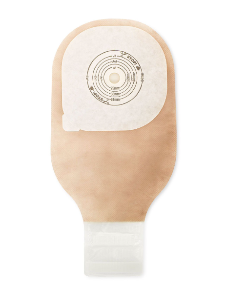 This is a one-piece, drainable pouch designed to open at the bottom, allowing for easy emptying. It is suitable for colostomy and ileostomy use. The Flextend™ skin barrier provides extended wear time and offers high resistance to moisture and erosion, helping protect the skin. A viewing option allows you to easily check the stoma and output by lifting the flap.