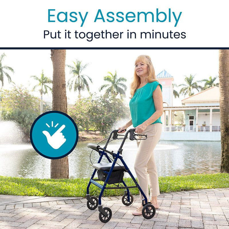 The Vive Lightweight Rollator offers comfortable, stable support while remaining easy to handle and transport. Made from durable aluminum, it weighs just 14 lbs yet supports up to 300 lbs. The compact frame is easy to maneuver through doorways and small spaces, and the rollator folds quickly for travel or storage. A padded seat and supportive backrest provide a resting spot whenever needed, while an integrated storage compartment keeps personal items secure while on the go.
